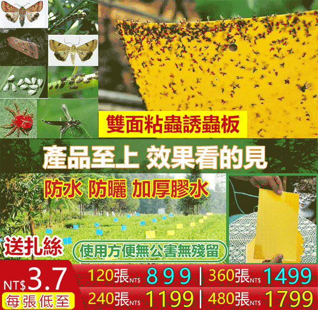 2分鐘前種菜養花不會用打農藥!物理防蟲「雙面粘蟲板」不怕水、不怕曬,粘性超強。花園、果園無需打農藥。室內,院子都可以使用! - 雙面粘蟲板 超值價 360張裝入僅需 NT$1499